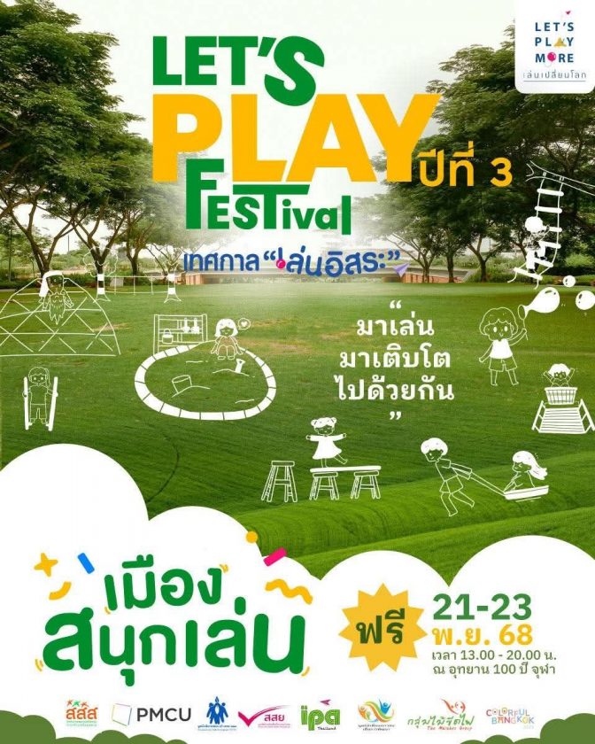 #LetsPlayFestival #เมืองสนุกเล่น #เล่นอิสระ #FreePlay #อุทยาน100ปีจุฬา #กิจกรรมสำหรับเด็ก #กิจกรรมสําหรับเด็กและเยาวชน