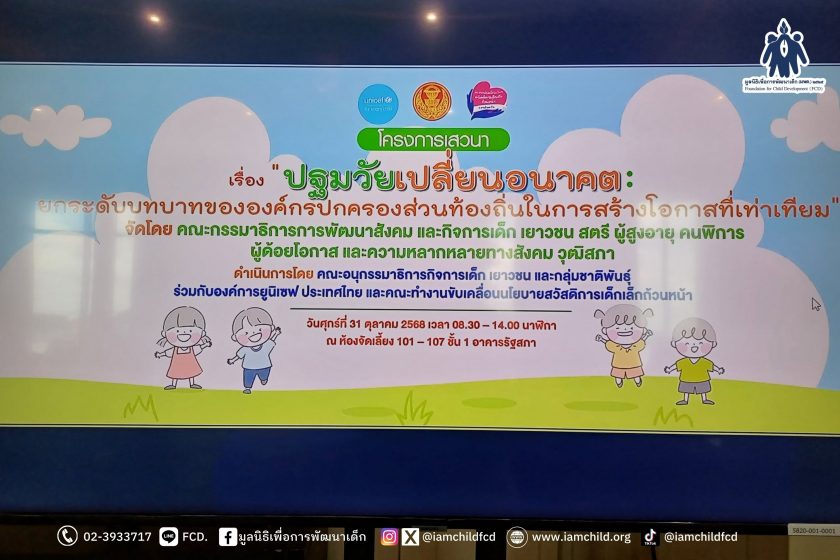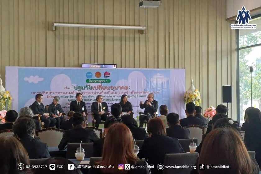 มูลนิธิเพื่อการพัฒนาเด็ก โดย นายเชษฐา มั่งคง ผู้อำนวยการมูลนิธิเพื่อการพัฒนาเด็ก , นางสาวเสารัตน์ ประดาห์ หัวหน้าศูนย์พัฒนาเด็กดวงแข มูลนิธิเพื่อการพัฒนาเด็ก และ นางสาวติ๋ม ชูแก้ว ประธานชุมชนวัดดวงแข เข้าร่วมงานเสวนา เรื่อง “ปฐมวัยเปลี่ยนอนาคต: ยกระดับบทบาทขององค์กรปกครองส่วนท้องถิ่น ในการสร้างโอกาสที่เท่าเทียม”