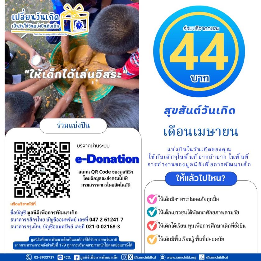 ร่วมแบ่งปันในวันเกิดของคุณ เพียงคนละ 44 บาท