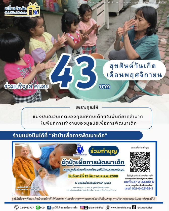 ชวนคนเกิด “พฤศจิกายน”ร่วมแบ่งปันในวันเกิดของคุณ เพียงคนละ 43 บาท