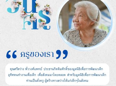 มูลนิธิเพื่อการพัฒนาเด็ก ขอขอบคุณ บริษัท บางกอกแพค จำกั […]
